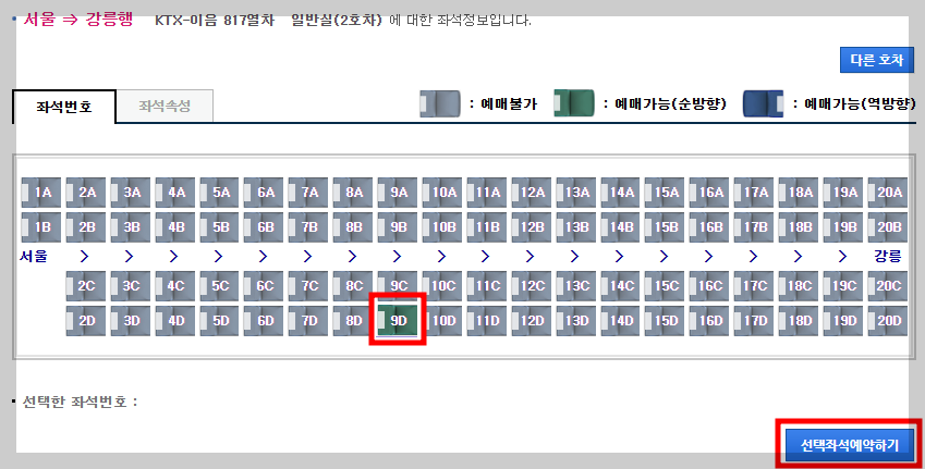 ※KTX 예매 시 좌석을 효율적으로 선택하는 방법과
