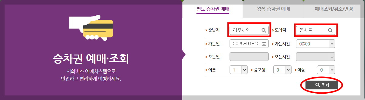 시간표를 체크했다면,시외버스 온라인 예매를 진행해 보도록 할께요🚀