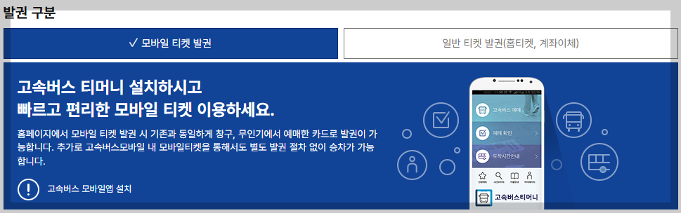 고속버스 티머니 내 모바일티켓을 통하면 별도의 발권 절차 없이도 승차가 가능합니다.