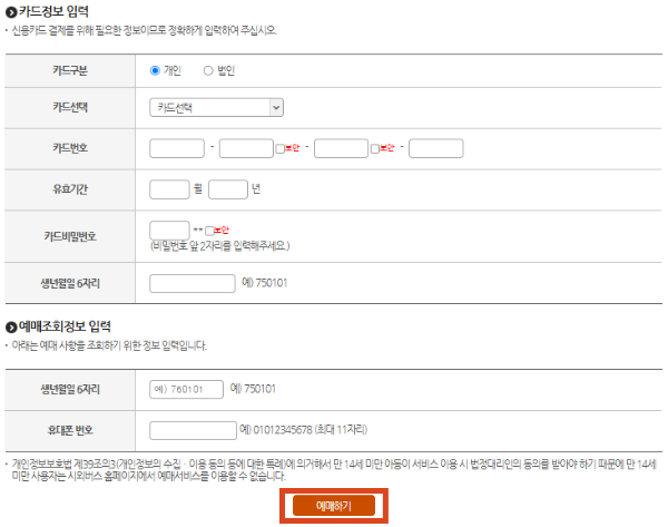 예매 후 예약 번호를 이용하여 현장에서 발권이 가능합니다.