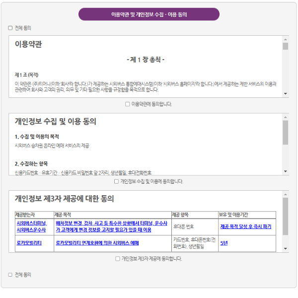 이용약관 및 개인정보수집 이용동의를 진행합니다 (전체동의 진행)