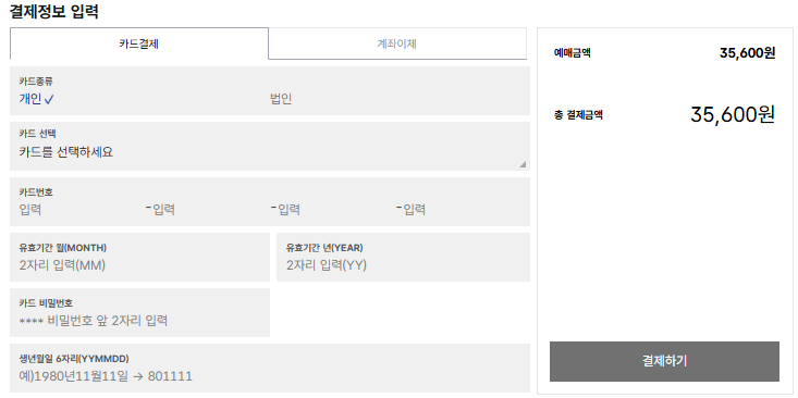 ●좌석을 선택한 후 결제를 통해 티켓팅을 해야합니다.