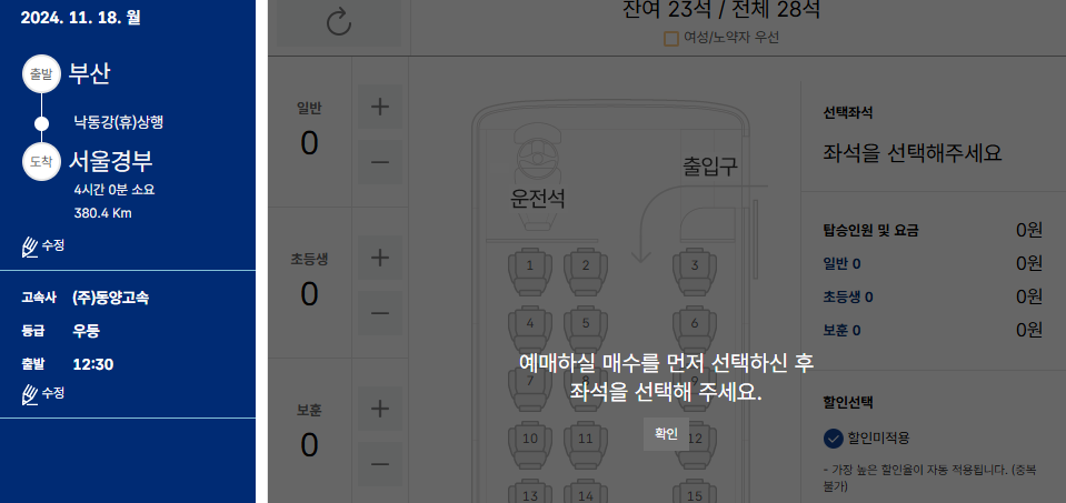●메인 화면에서 고속버스 예매 >> 원하는 노선을 찾아봅니다.