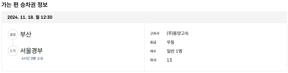 ● 출발일자의 시간대별 등급별 버스 시간표 및 좌석 정보하세요.