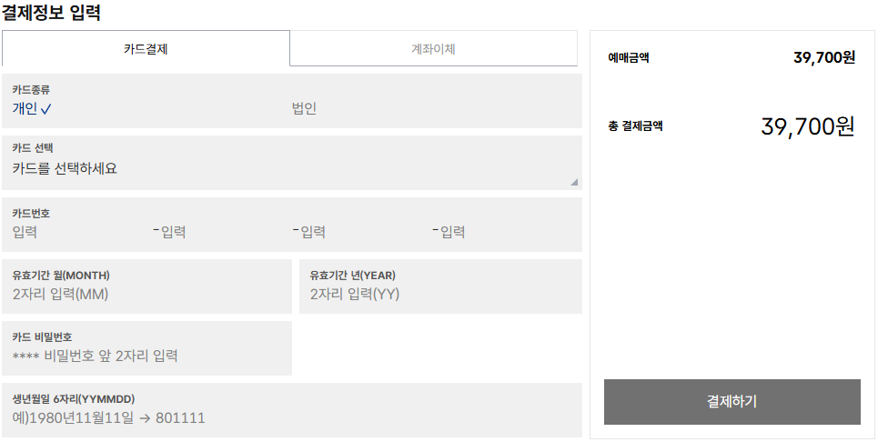 예매할 때 사용한 신용카드를 꼭 지참해야 합니다.