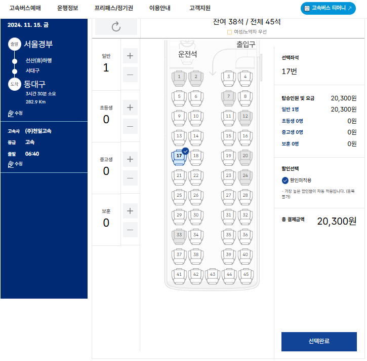 - 터미널: 부산 고속버스터미널