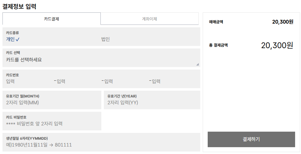 예매시 알아둘점