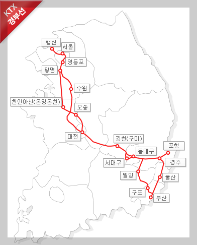 대한민국을 남북으로 잇는 대표적인 고속철도 노선으로, 수도권과 영남권을 빠르게 연결합니다.