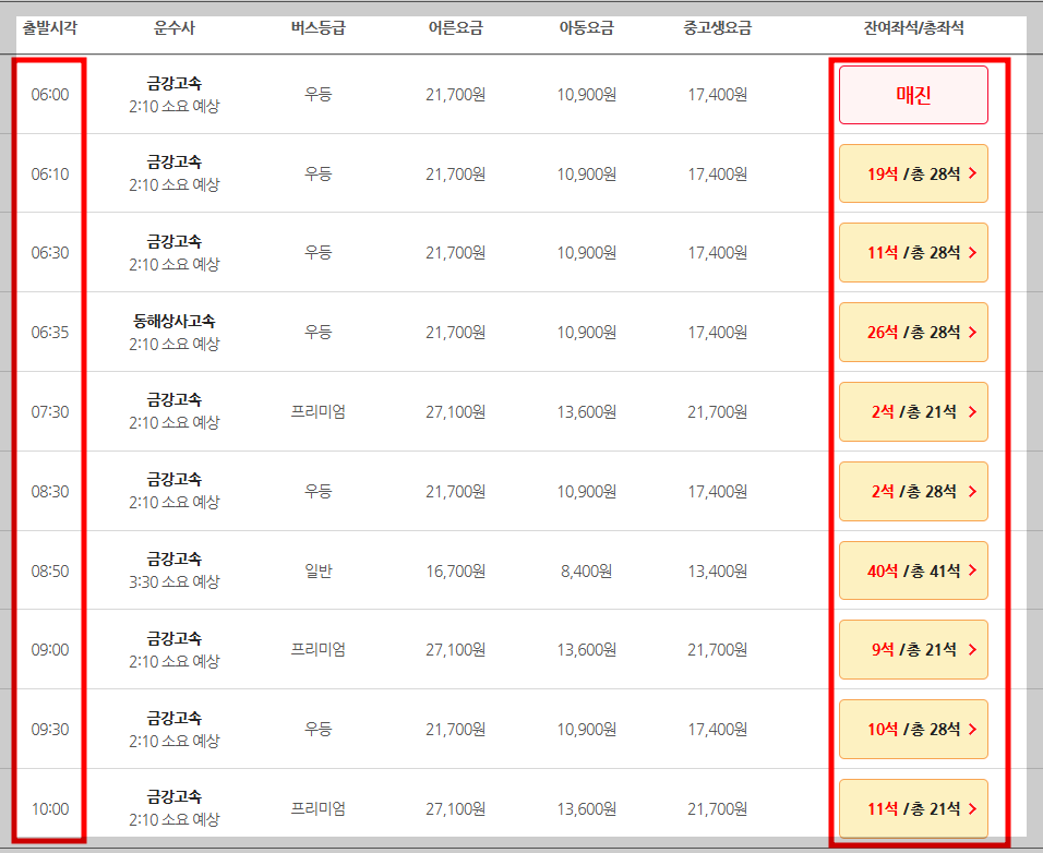 특히, 출발 시간이 임박했거나 인기 노선을 이용할 경우 좌석이 빠르게 매진될 수 있으니,
