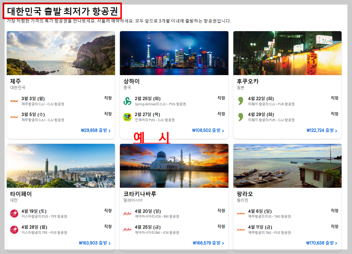 - 특정 목적지가 정해지지 않았다면 전 세계 최저가 항공권을 검색해보세요.