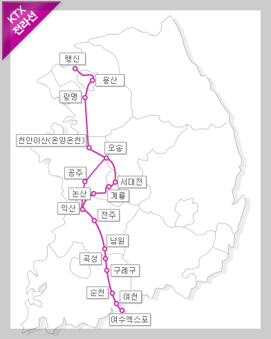 용산, 천안아산, 익산, 전주, 순천, 여수엑스포 등