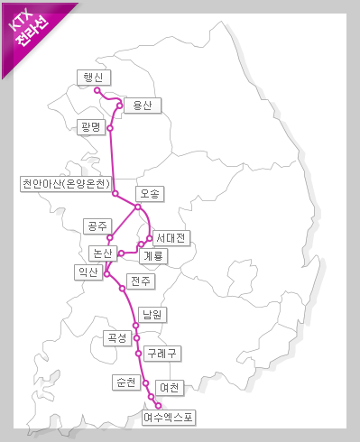 KTX 기차역 노선 안내