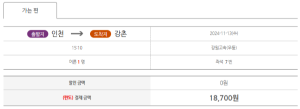 가는날 가는 시간을 설정하고, 탑승인원 숫자를 입력합니다 (예 : 1명, 2명, 3명)