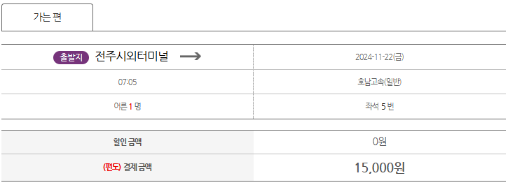 예매를 하기 위해서는 출발일 당일 예매보다는 전날 미리 예매를 진행하는 것이 좋습니다.