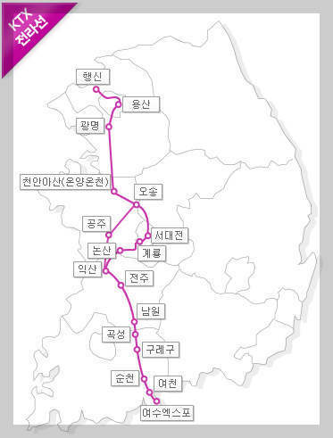 용산, 천안아산, 익산, 전주, 순천, 여수엑스포 등