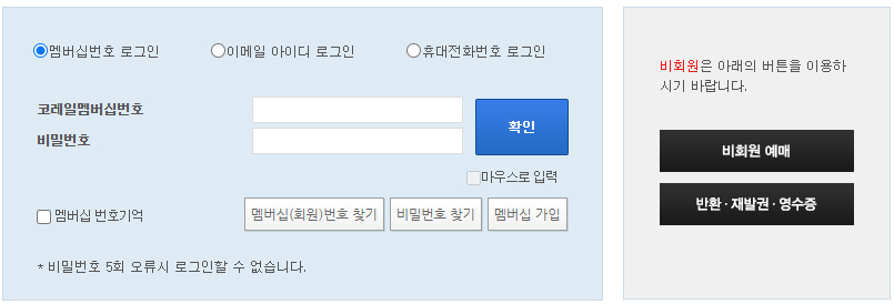 코레일 회원인 경우에는 로그인 후 예매를 진행하면 되고,