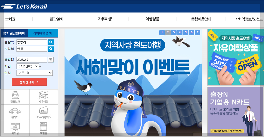 레츠코레일 홈페이지에 접속합니다.