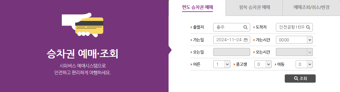예매를 하기 위해서는 출발일 당일 예매보다는 전날 미리 예매를 진행하는 것이 좋습니다.