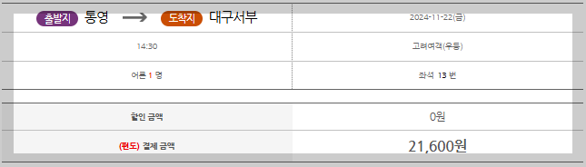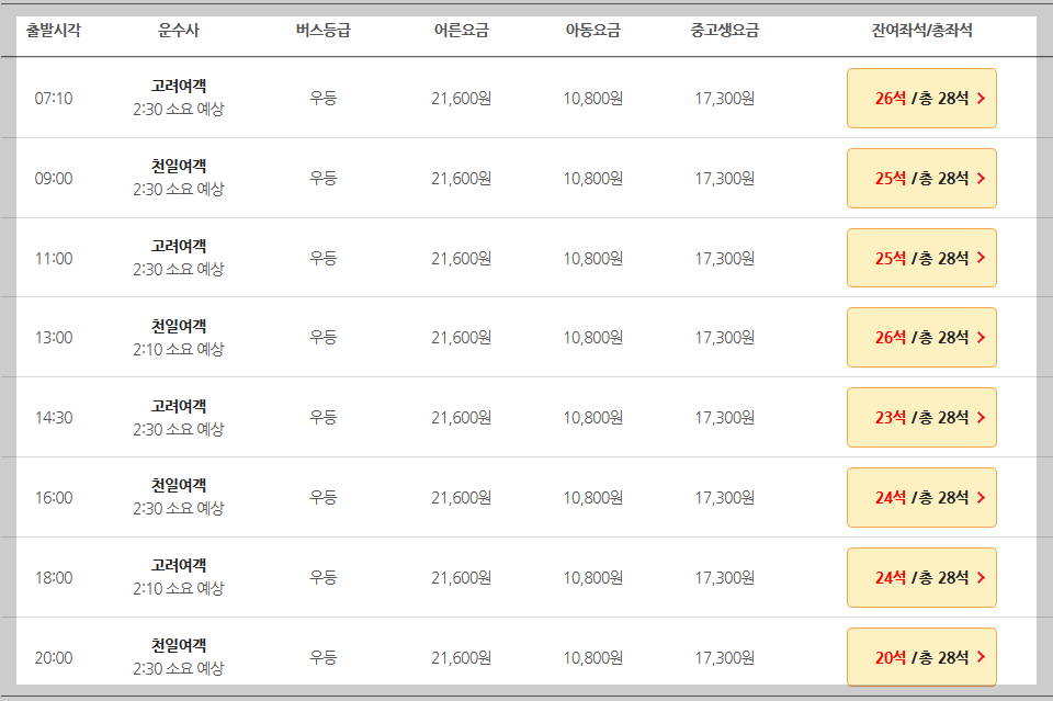 예매를 하기 위해서는 출발일 당일 예매보다는 전날 미리 예매를 진행하는 것이 좋습니다.