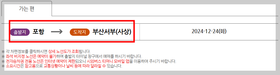 특히 출발 시간이 임박했거나 인기 있는 노선을 이용하실 경우에는
